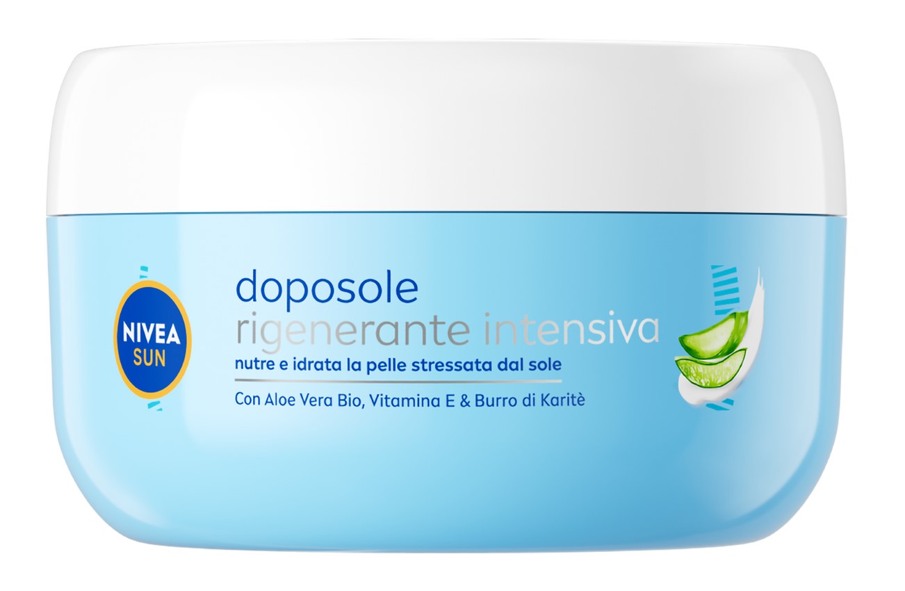 Nivea Sun crema intensiva doposole rigenerante, idrata la pelle per 48 ore e dona un sollievo immediato dopo l'esposizione al sole grazie alla formulazione arricchita con Aloe Vera e Acido Ialuronico.