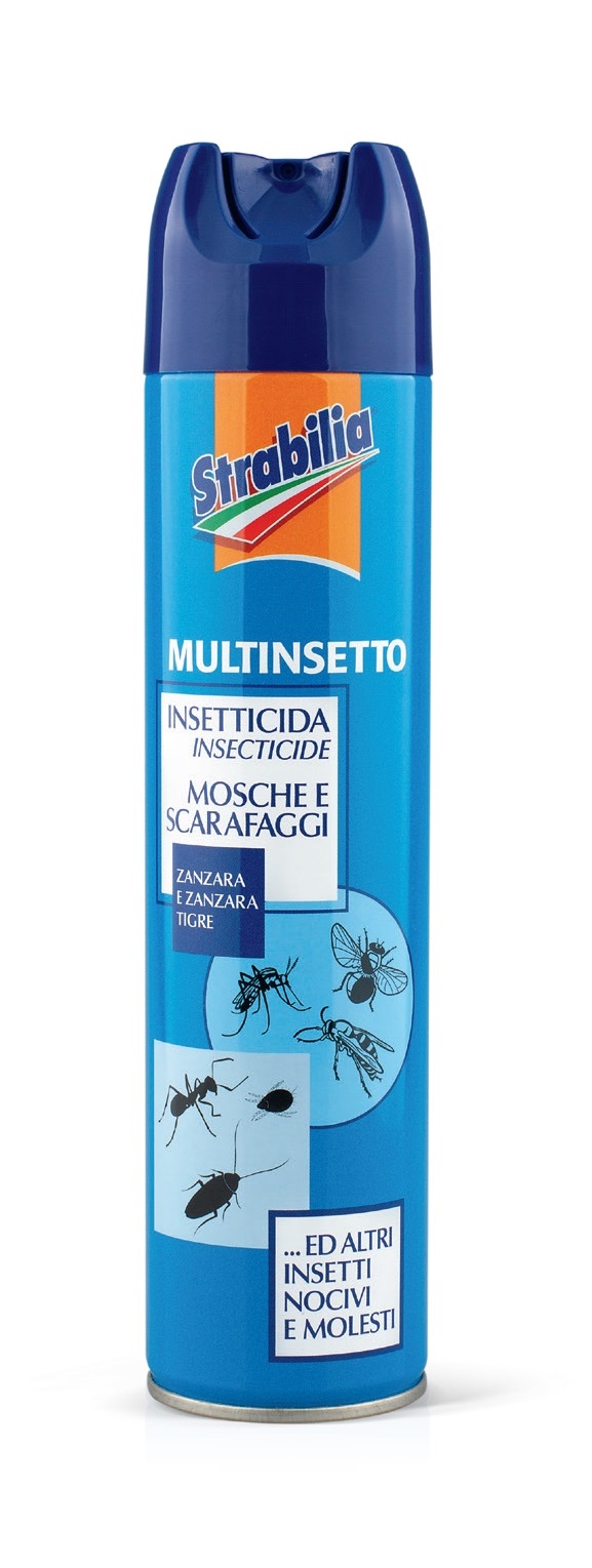 Insetticida multinsetto Spray Strabilia, efficace contro mosche e scarafaggi ed altri insetti nocivi.